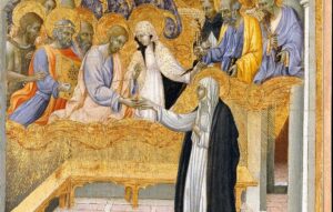 Crying and with compassion, she began to think about the foreskin of Christ, where it may be located [after the Resurrection]. And behold, soon she felt with the greatest sweetness on her tongue a little piece of skin alike the skin in an egg, which she swallowed. After she had swallowed it, she again felt the little skin on her tongue with sweetness as before, and again she swallowed it. And this happened to her about a hundred times. And when she felt it so frequently, she was tempted to touch it with her finger. And when she wanted to do so, that little skin went down her throat on its own. And it was told to her that the foreskin was resurrected with the Lord on the day of resurrection. And so great was the sweetness of tasting that little skin that she felt in all [her] limbs and parts of the limbs a sweet transformation.