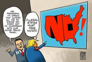 Now for Trump’s 2017 voter fraud panel. Bit of a head scratcher, this one. Why all the bruhaha? While some of the states soak saps like you and me for their voter data, they all give it up free to the two major parties. So the GOP already had this stuff, right? Yet many states refused to comply. Huh?