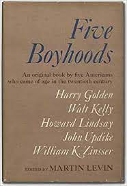 This lightly fictionalized memoir is a work in progress. The title refers to the book Five Boyhoods, edited by Martin Levin, in which five famous men describe their childhoods in each of the first five decades of the twentieth century. Playwright/actor Howard Lindsay, co-author of the book The Sound of Music, wrote about the aughts; Harry Golden, author of Only in America and For 2¢ Plain, wrote about the teens; Walt Kelly, creator of Pogo, took the twenties; William K. Zinsser, author of On Writing Well, had the thirties; and author John Updike, of the Rabbit novels, took the forties.
